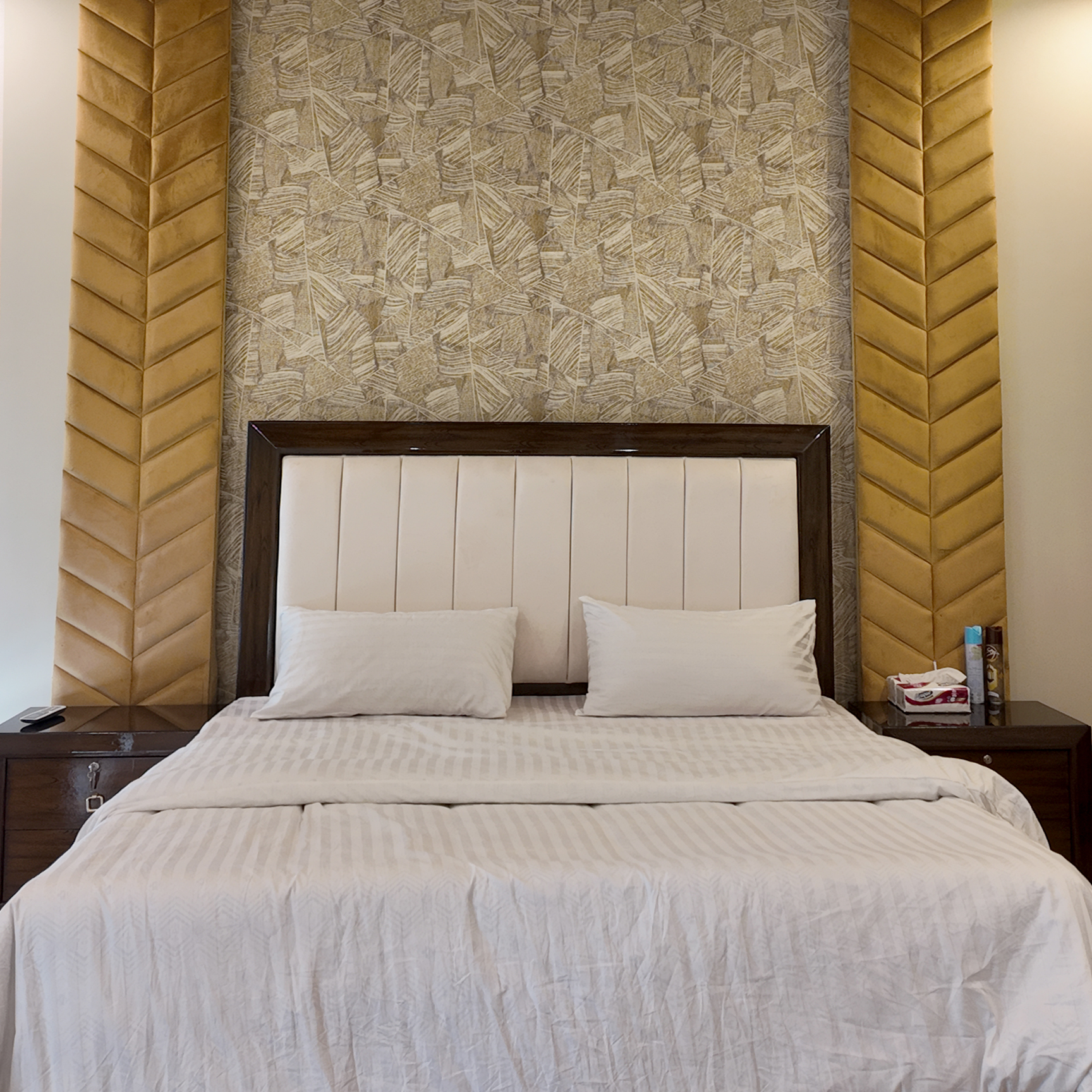 The highlight of this room is the modern jacuzzi bathtub, giving you a relaxing and refreshing experience after a long day. The attached washroom is clean, stylish, and fully equipped for your convenience.